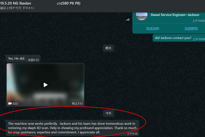 Después de recibir este proyecto de posventa, nuestro ingeniero de posventa Jackson se comunicó con el cliente lo antes posible para conocer la situación real al principio. Un buen servicio posventa se basa en proteger los intereses de los clientes, y Jackson conoce bien esta verdad. En este caso, es obvio que al cliente le interesa restaurar la máquina para su uso lo antes posible. Por lo tanto, Jackson no perdió ni un poco de tiempo, incluso trabajó horas extras hasta altas horas de la noche para verificar los datos anteriores, y finalmente encontró una solución. Para facilitar la comprensión de los clientes, se adoptó una conexión de video y orientación en línea para que finalmente la máquina reanude su funcionamiento.